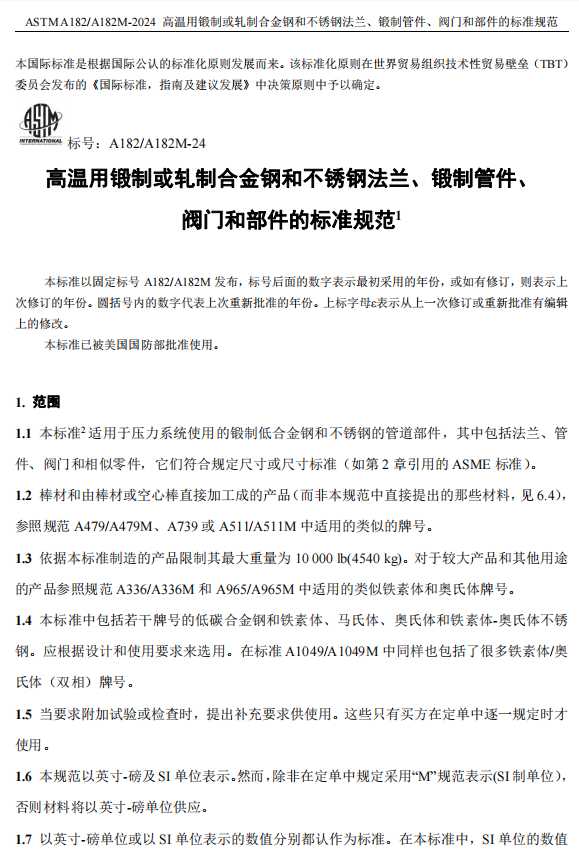 ASTM A182/A182M-2024中文版